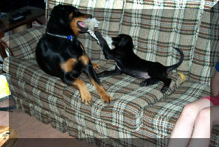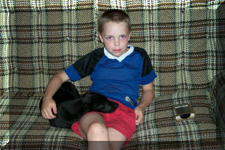 Jean-Luc at age 4, with our '95 Jeep Wrangler:           This is what happens when the dog is bigger than you are: