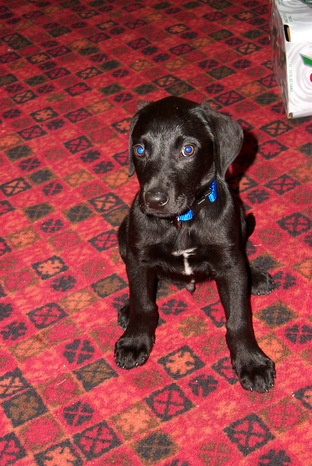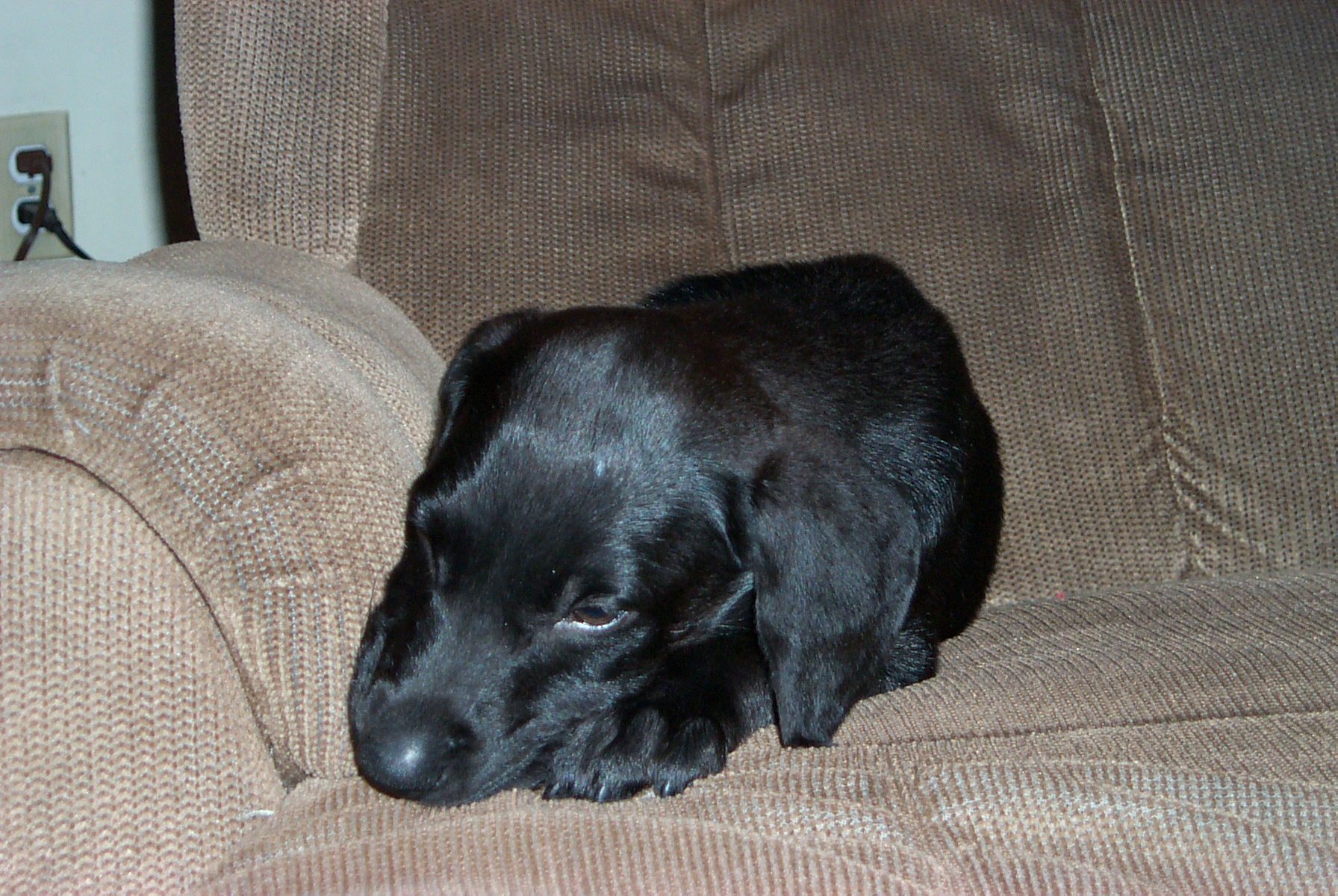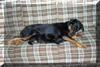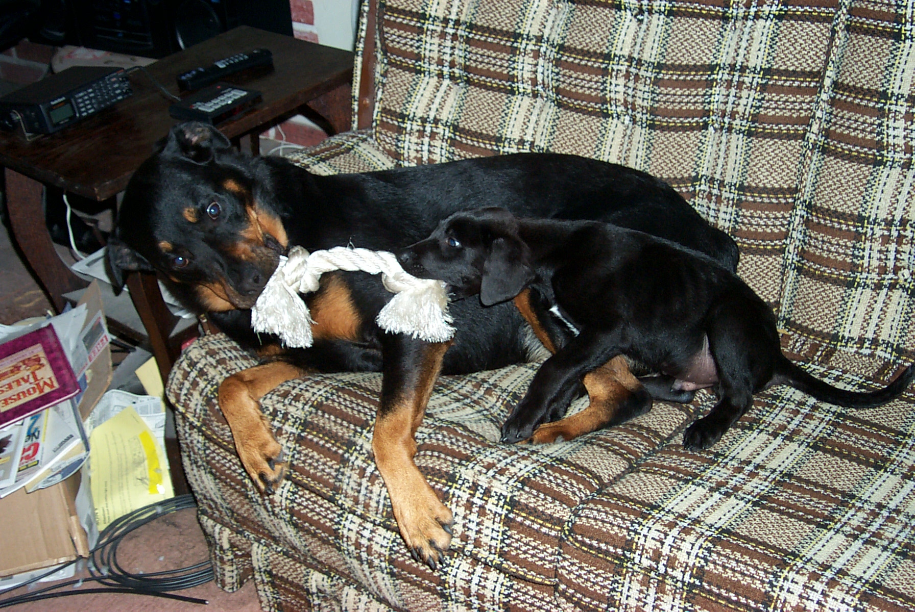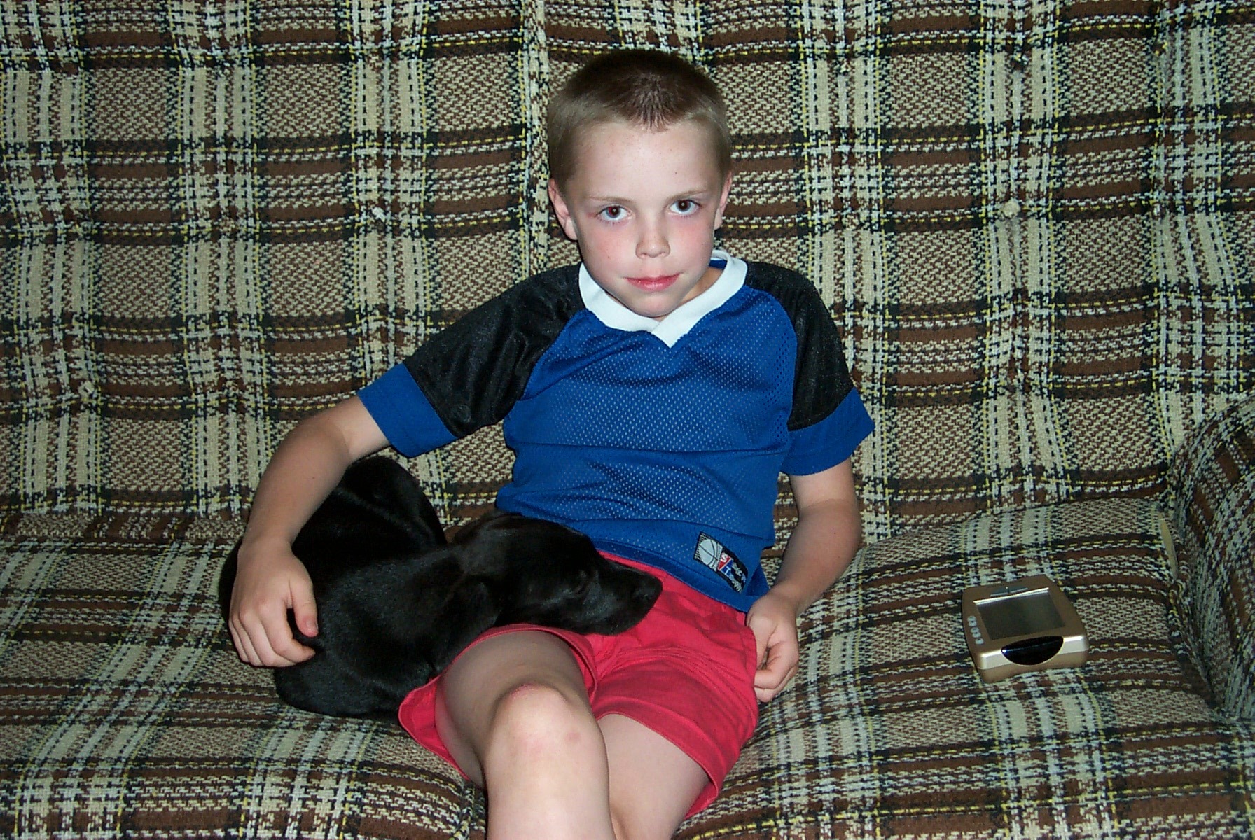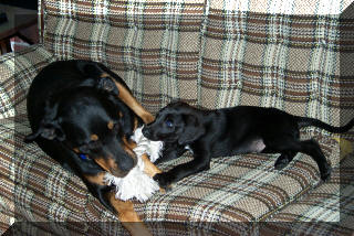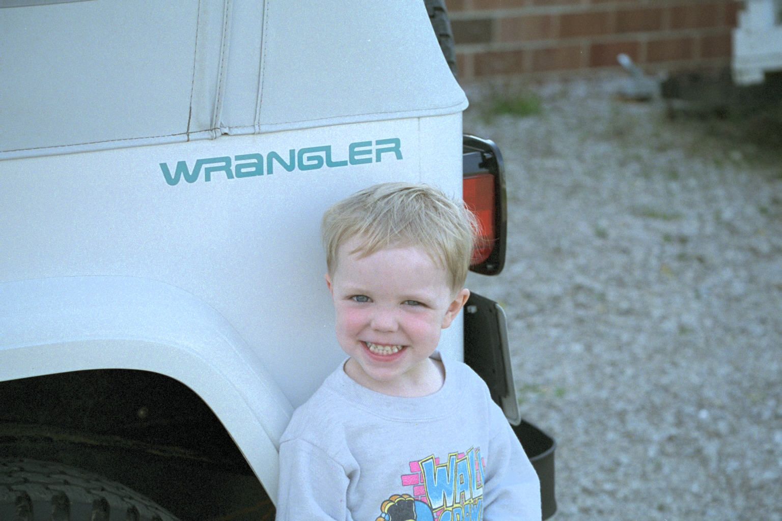 Jean-Luc at age 4, with our '95 Jeep Wrangler: This is what happens when the dog is bigger than you are: (Jean-Luc was on the couch and now Tabby is.)